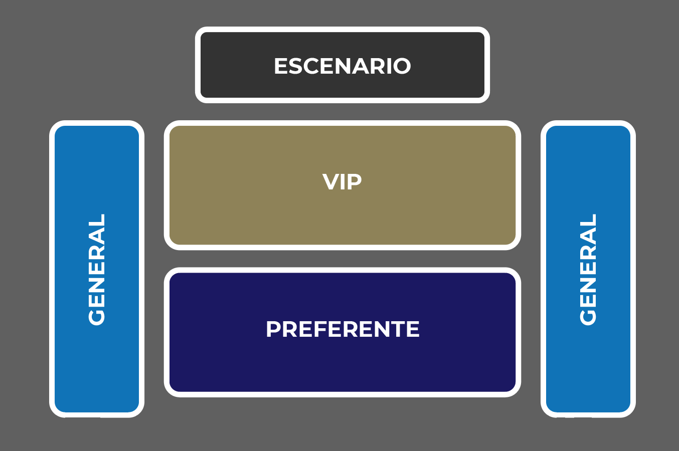 TODAS LAS ZONAS SON DE ENTRADA GENERAL CON ASIENTO PERO SIN LUGAR ASIGNADO.